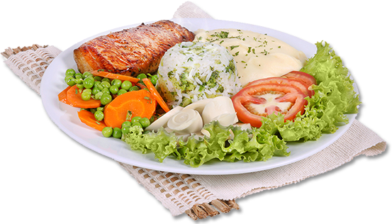 Guarnição: Arroz, Feijão, Farofa, Salada, Polenta, Chuchu Refogado,
